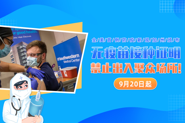 加州防疫新规重拳实施!无疫苗接种证明的,禁止出入聚众场所!